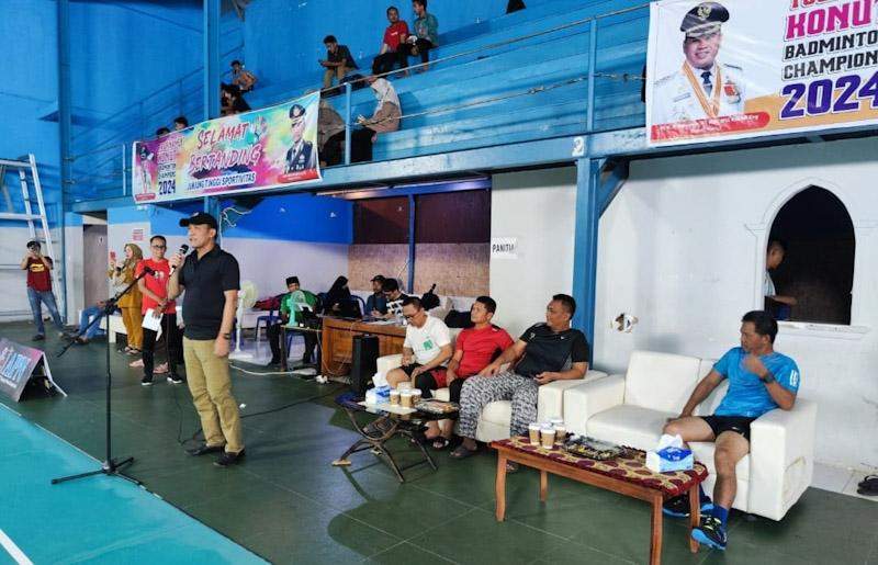Acara yang berlangsung di Kota Kendari ini, bertemakan “Konut Badminton Champions”. Tempat kegiatan, Lapangan Bulu Tangkis Indo Jaya Kendari, Kamis (11/1/2024).
