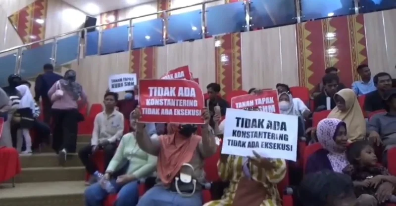 Mereka menyuarakan penolakan terhadap rencana pembangunan Ruang Terbuka Hijau (RTH) di kawasan yang disebut masih berstatus sengketa.