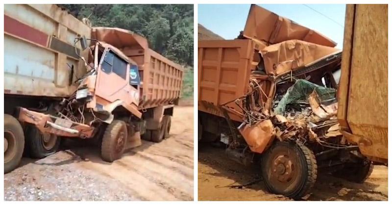 Akibatnya, bagian depan dump truk yang dikemudikan korban rusak parah usai menabrak bagian belakang dump truk lainnya. Korban terjepit dan sempat dievakuasi pekerja lainnya.