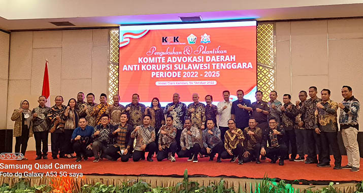 Indosultra.com, Kendari – Gubernur Provinsi Sulawesi Tenggara (Sultra), Ali Mazi resmi mengukuhkan dan melantik Pengurus Komite Advokasi Daerah Anti Korupsi Sulawesi Tenggara (Sultra) 2022-2025 di salah satu hotel di Kendari, Selasa (4/10/2022).