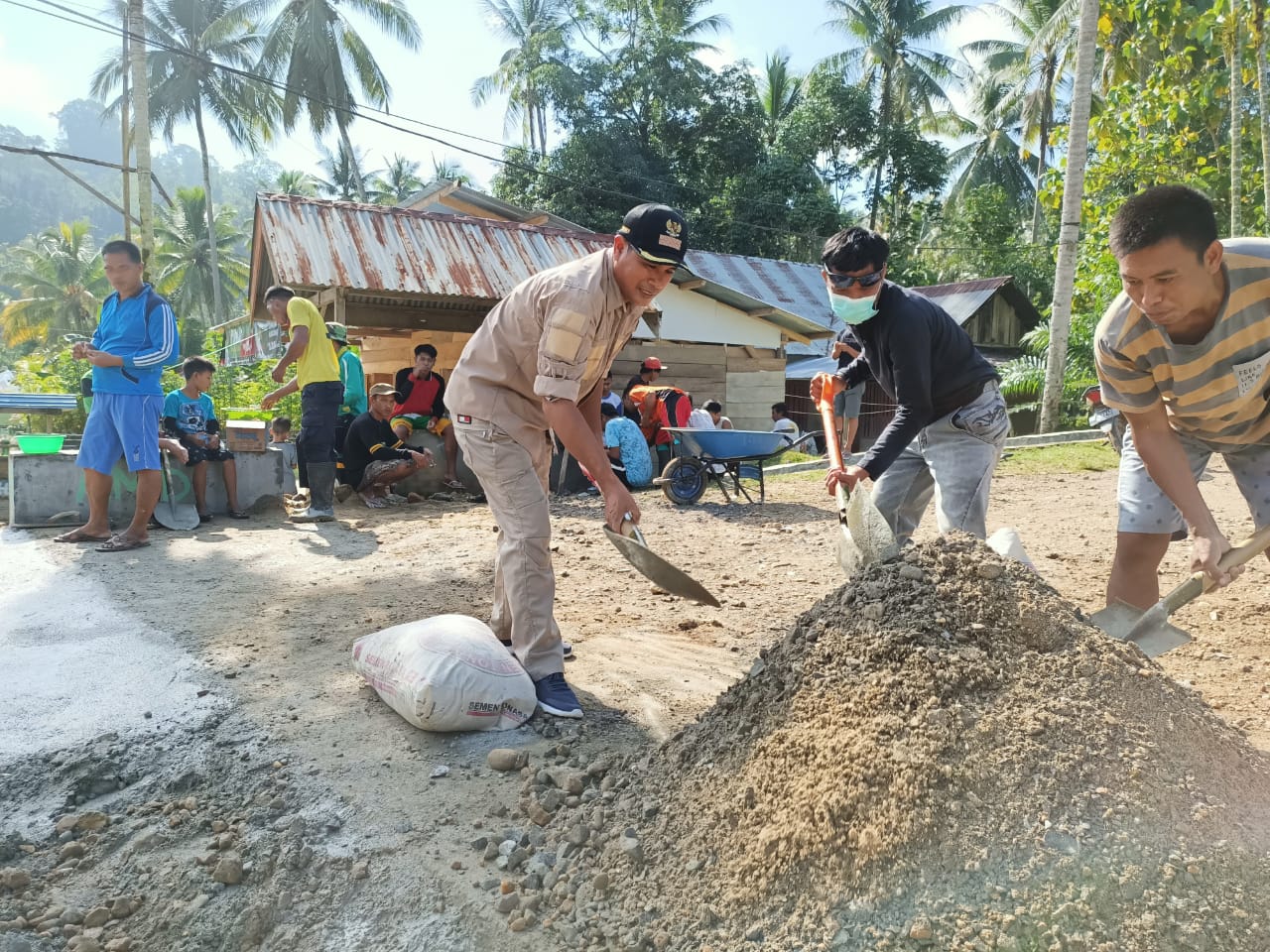 Ketgam: Kepala Desa Tetelupai, Asmudin Moita bersama warganya saat melakukan bakti sosial perbaikan jalan umum. (Indosultra.Com)