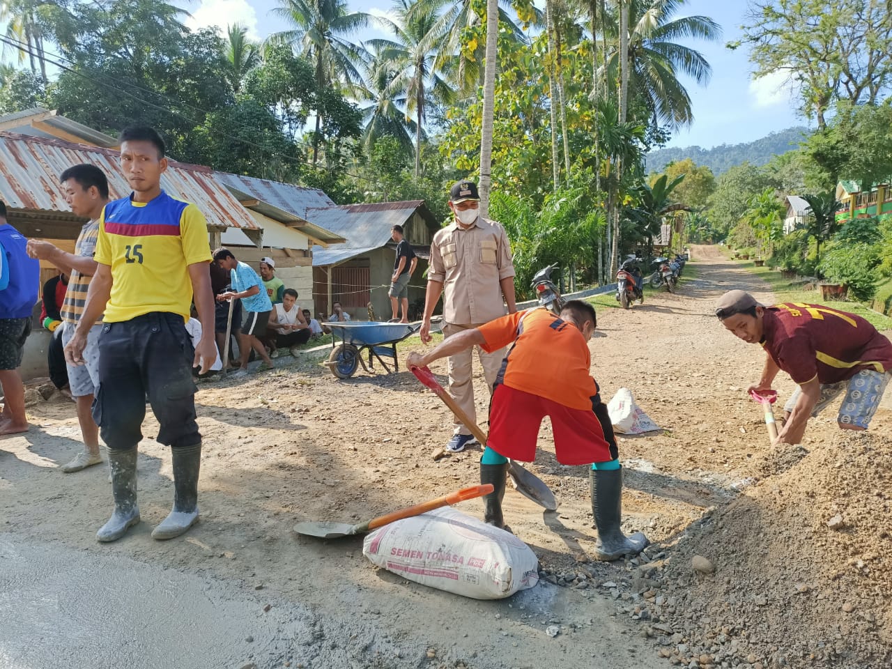 Indosultra.com, Konawe Utara-Warga Desa Tetelupai, Kecamatan Lasolo, Kabupaten Konawe Utara (Konut), Sulawesi Tenggara (Sultra), kompak gotong royong melakukan perbaikan jalan umum di desa itu.