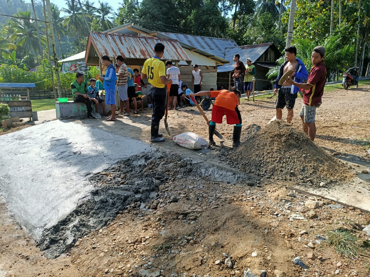 Kerja bakti dilakukan, karena akses jalan masuk desa yang dihuni sekitar ratusan jiwa itu masih rusak dan penuh bebatuan. Jika musim hujan jalan ke desa yang telah berdiri sekitar 10 tahun itu licin dan berlumpur sehingga untuk masuk harus ekstra hati-hati.