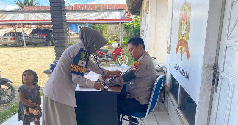 Proses ini mencakup pemeriksaan tekanan darah, lab sederhana, dan konsultasi kesehatan. Hasilnya tidak hanya disampaikan kepada anggota polisi yang bersangkutan, tetapi juga dilengkapi dengan saran-saran dan anjuran untuk menjaga kesehatan di tengah kesibukan menjaga keamanan dan ketertiban selama proses pemilu.