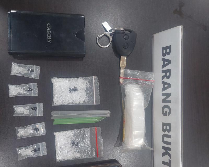 Pelaku akhirnya ditangkap Tim Opsnal Sat Resnarkoba. Di lokasi itu kemudian pelaku digeledah beserta kendaraan yang dibawah. Polisi menemukan 2 (dua) buah Sachet plastik bening sedang yang di dalamnya berisikan kristal bening yanh diduga narkotika jenis shabu. Kemudian 5 (lima) buah sachet plastik bening kecil yang di dalamnya berisikan Kristal bening yang di duga narkotika jenis shabu dengan Berat Brutto 16,19 gram.