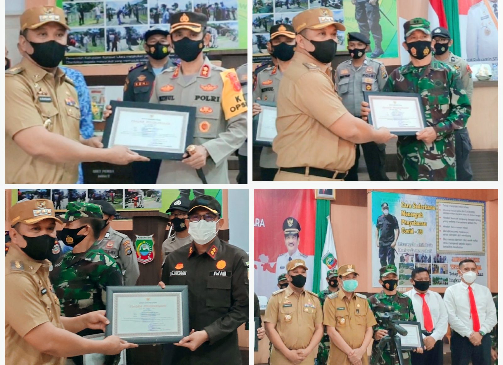 Ketgam: Satgas Covid-19 Konut bersama aparat gabungan Polres Konut, TNI Kodim 1417/Kendari, Kejari Konawe saat menerima piagam penghargaan atas dedikasi dan prestasi menggagalkan transaksi narkoba lintas provinsi saat menjalankan tugas.(Indosultra.Com).