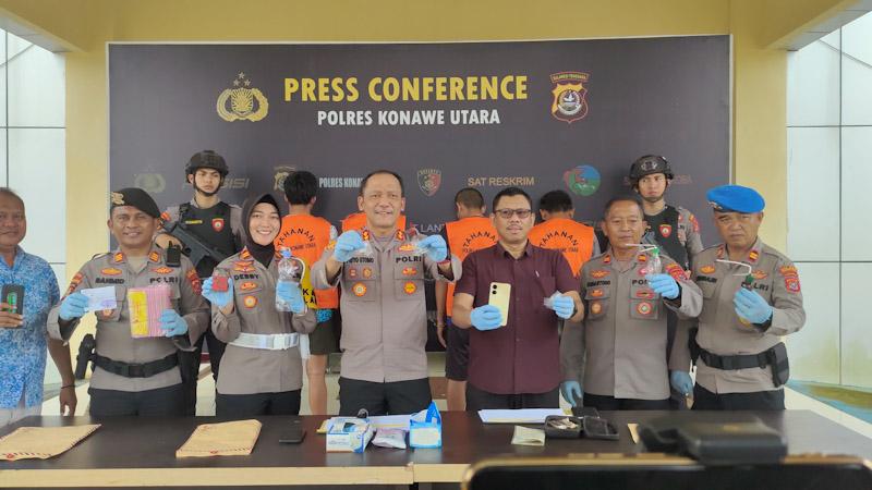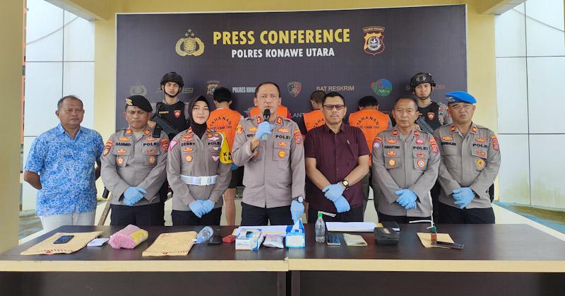 Hal itu diungkapkan, Kepala Kepolisian Resort (Polres) Konut, AKBP Priyo Utomo, SH.S.I.K saat menggelar press rilis penangkapan baru 4 tersangka pengedar narkoba.