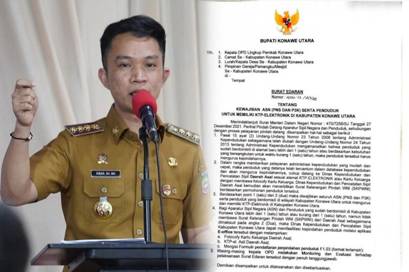 Hal itu berdasarkan Surat Edaran Nomor: 406-12/A320. Tentang kewajiban ASN (PNS DAN P3K) serta penduduk untuk memiliki KTP Elektronik di Konut yang ditetapkan di Wanggudu, pada Senin 28 Juli 2025 oleh Bupati Konut, H. Ikbar, S.H., M.H.