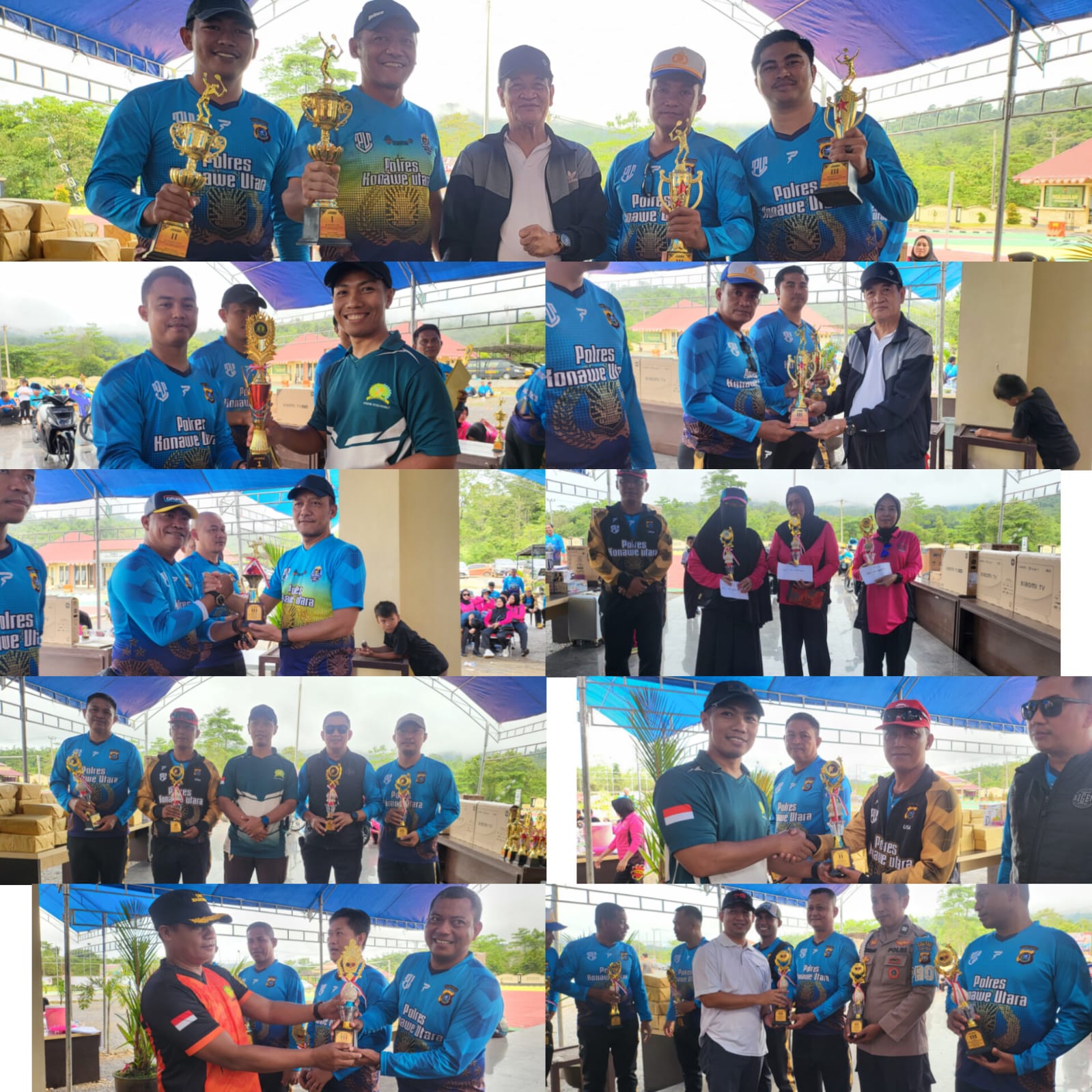 Penyerahan hadiah dilakukan langsung oleh Kapolres Konut, Wakil Bupati Konut, Dandim 1430 Konut, Kapos BIN Konut, Kapos Basarnas Konut, dan para Pejabat Utama Polres Konut.
