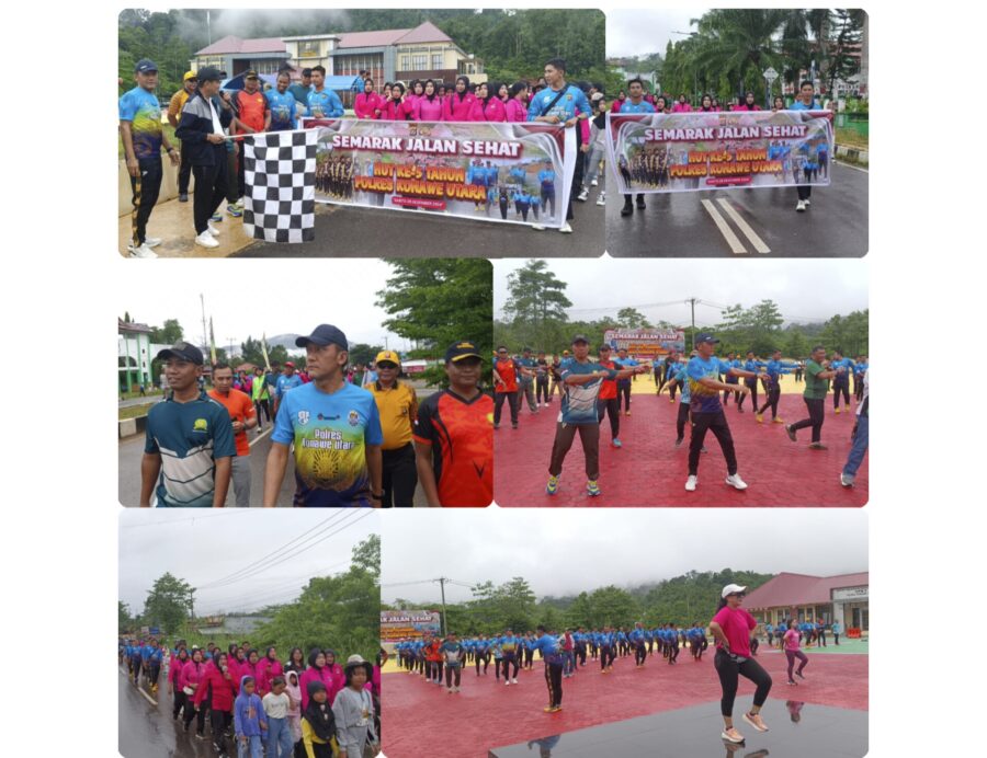 Indosultra.Com, Konawe Utara – Memperingati Hari Ulang Tahun (HUT) Polres Kabupaten Konawe (Konut) ke 5, Kepala Kepolisian Resort (Kapolres) Konut, AKBP Priyo Utomo SH.,S.I.K menggelar berbagai program kegiatan. Salah satunya jalan sehat.