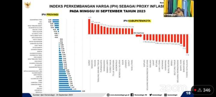 Dia menyebutkan, jika beras terjadi kenaikan di 284 kabupaten kota, dan gula pasir terjadi kenaikan di 236 kebutuhan/kota.