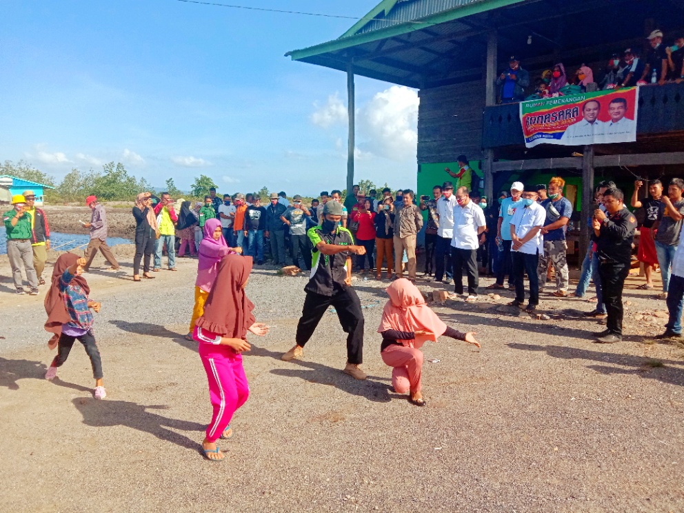 Ketgam:Silat Bantaeng yang dilakukan warga Desa Sama Subur, Kecamatan Motui usai kampanye terbatas tim pasangan Ruksamin-Abu Haera.(Foto:Indosultra.Com).