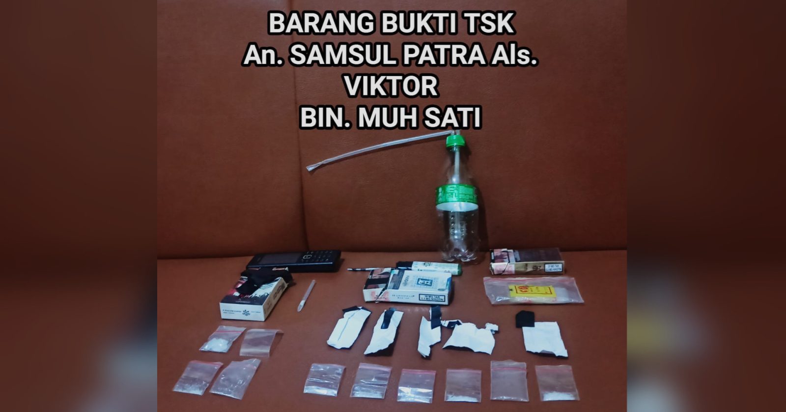 Tak berhenti di situ, Polisi juga melakukan pengembangan terhadap tersangka SP alias V dan menemukan sabu siap edar di rumahnya dengan berat Bruto 1.86 gram yang disimpan didalam pembungkus rokok serta beberapa peralatan yang digunakan untuk mengonsumsi narkoba.