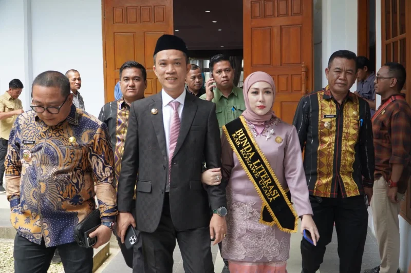 Hj. Wisra Wastawati Ikbar hadir didampingi oleh Bupati Konut, H. Ikbar, SH., MH., bersama sejumlah pejabat daerah, termasuk Kepala Dinas Perpustakaan Konut Djunaidi, S.Pd., M.Si, Kepala Dinas Pendidikan dan Kebudayaan Konut Asmadin, S.Pd., MM, serta beberapa pejabat Setda Konut.