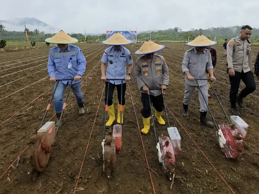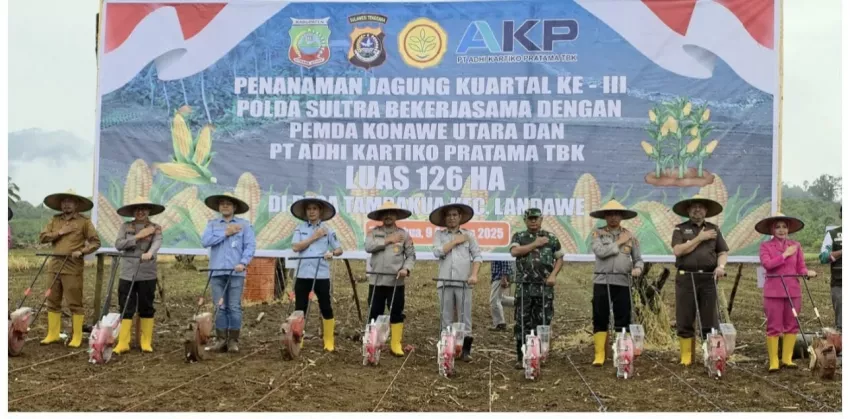Indosultra.com, Konawe Utara – Dalam upaya memperkuat ketahanan pangan sekaligus memberdayakan masyarakat lingkar tambang, Polda Sulawesi Tenggara bersama Pemerintah Daerah Konawe Utara dan PT. Adhy Kartiko Pratama melaksanakan kegiatan penanaman jagung kuartal III di Desa Tambakua, Kecamatan Landawe, Sabtu (9/8/2025).
