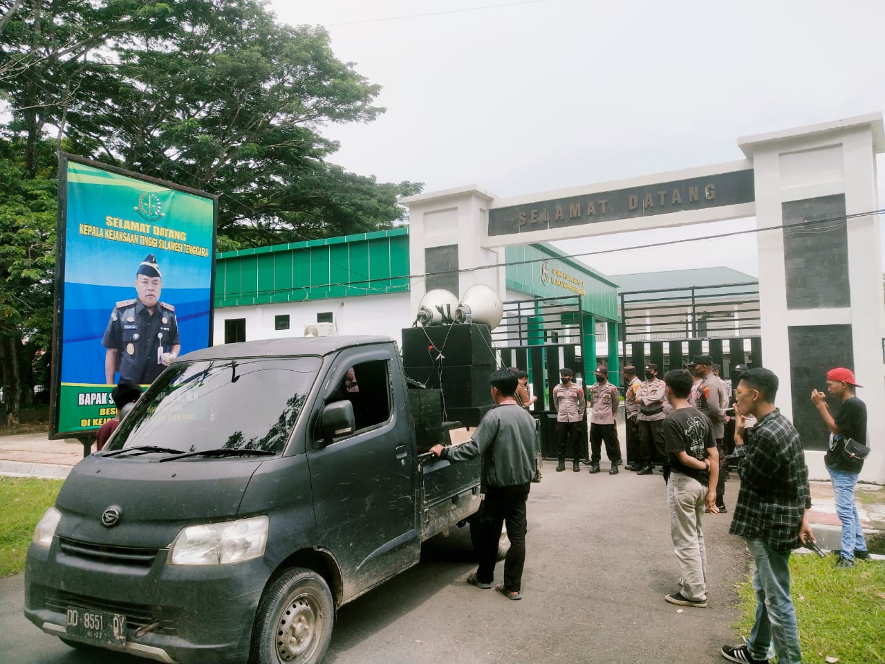 Indosultra.com, Unaaha – Puluhan orang yang tergabung dalam Aliansi Suara Rakyat (Alsurat), Rabu (2/2/2022) menggelar aksi damai di kantor Kejaksaan Negeri (Kejari) Konawe, terkait dugaan korupsi dan penyalahgunaan wewenang di dinas perhubungan Konawe yang merugikan negara hingga miliaran rupiah.