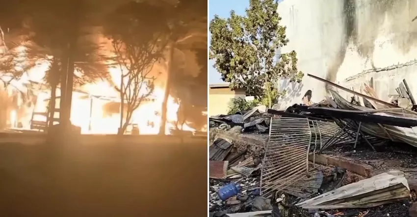 Dalam rekaman video yang diterima redaksi Indosultra.com, tampak kobaran api membesar disertai asap hitam pekat membumbung tinggi ke langit. Api dengan cepat melalap seluruh bagian bangunan, membuat suasana di sekitar lokasi mencekam.