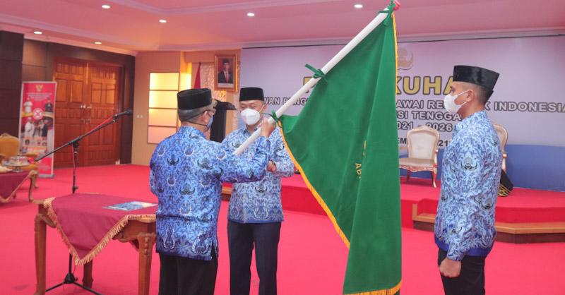 Pengukuhan itu dilakukan oleh Ketua Umum (Ketum) Dewan Pengurus (DP) Korpri Nasional, Prof. Zudan Arif Fakrullah di Aula Merah Putih Rumah Jabatan Gubernur Sultra pada Sabtu (13/11/2021).