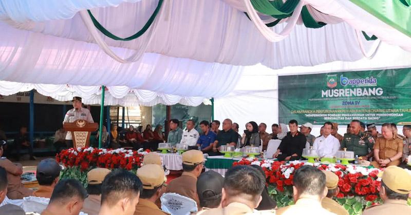Dalam Musrembang itu Ruksamin menyatakan bahwa APBD Kabupaten Konut untuk tahun 2025 mengalami penurunan signifikan, dari Rp2,3 triliun pada tahun 2024 menjadi hanya Rp1,1 triliun pada tahun 2025.