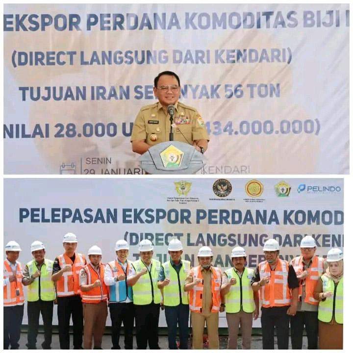 Indosultra.Com, Kendari – Provinsi Sulawesi Tenggara (Sultra) akhirnya mengekspor perdana komoditas Biji Pinang sebanyak 56 Ton ke Negara Iran. Pejabat (Pj) Gubernur Sultra, Andap Budhi Revianto hadir melakukan pelepasan Pelepasan ekspor perdana komoditas Biji Pinang (Direct Langsung dari Kendari), tujuan Iran sebanyak 56 ton, senilai 28.000 USD (Rp434 juta) di Pelabuhan Kendari New Port, Senin (29/1/2024) kemarin.