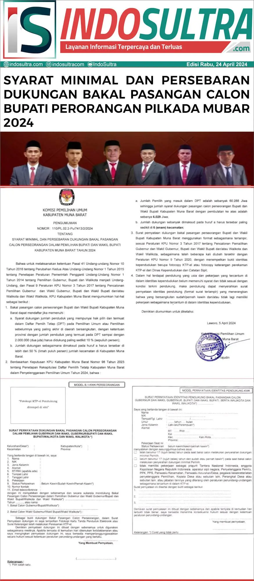 Syarat Minimal dan Persebaran Dukungan Bakal Pasangan Calon Bupati Perorangan Pilkada Mubar 2024 20:49 | 24 April 2024 37 Views