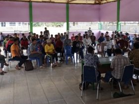 Ketgam: Masyarakat Desa Landawe, Landawe Utama dan Tambakua saat menggelar rapat untuk menggelar aksi tindak lanjut polemik lahan di PT ...