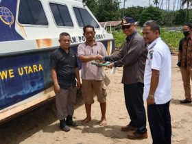 Indosultra.Com, Konawe Utara-Dinas Perhubungan (Dishub) Pemerintah Kabupaten (Pemkab), Konawe Utara (Konut), Sulawesi Tenggara (Sultra), menyalurkan bantuan 11 unit kapal jenis ...