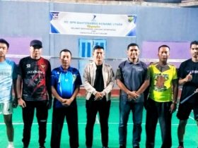 Ketgam: foto bersama ivent badminton dan volly ball di HUT Bhayangkara ke 76 Indosultra.Com, Konawe Utara-Pemerintah Desa Mataiwoi, Kecamatan Molawe, ...
