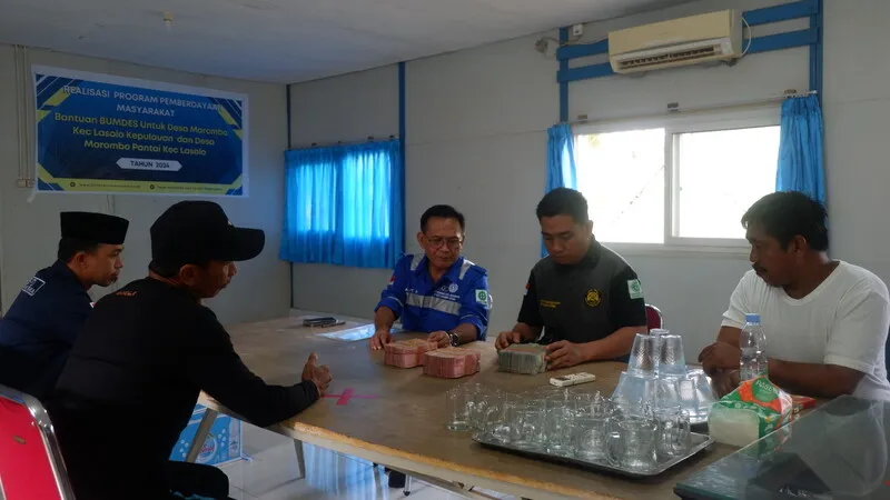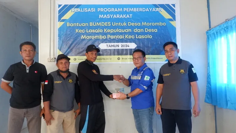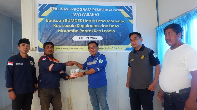 Mewakili Kepala Desa Morombo Pantai, Ketua BPD Desa Morombo Pantai Apriyanto, secara resmi menerima bantuan tersebut senilai Rp 125 juta tunai.