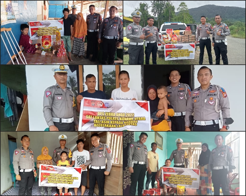 Dibawah komando Kasat Lantas Polres Konut, IPTU Ansyar, tim Satlantas Polres Konut berkunjung langsung ke rumah-rumah warga dan menyantuni para korban kecelakaan lalulintas.