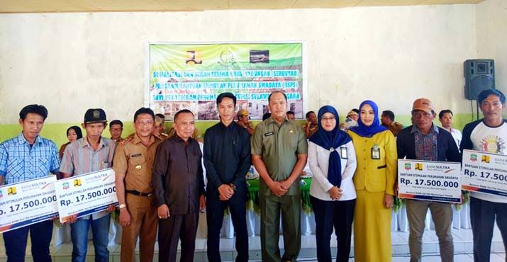Ketgam:Bupati Konut, Ruksamin bersama Ketua DPRD Konut dan jajaran Dispermukim, perwakilan Kementerian PUPR dan mitra kerja Pemda Konut saat menyalurkan bantuan BPSPS kepada 200 kepala keluarga tersebar di 13 kecamatan.(Indosultra.Com).
