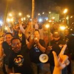 Iring-iringan api obor yang dibawa ribuan massa dari Kecamatan Andowia menyambut kehadiran paslon Rabu sebagai bentuk perjuangan dan dukungan.