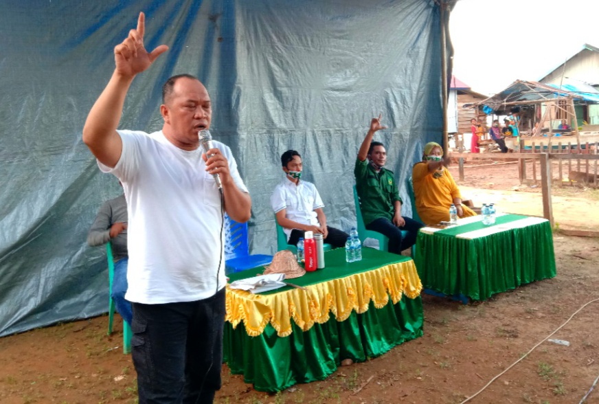 Ketgam: Paslon Ruksamin-Abu Haera saat menggelar kampanye terbatas gabungan Desa Waturambaha, Boedingi dan Boenaga Kecamatan Lasolo Kepulauan.(Foto:Indosultra.Com).