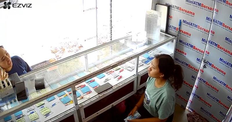 Dalam rekaman CCTV yang diterima Indosultra tampak seorang wanita tak dikenal dengan tenang mendatangi sebuah konter yang dijaga oleh seorang karyawan, sempat berpura-pura menelepon pemilik konter untuk meyakinkan karyawan.