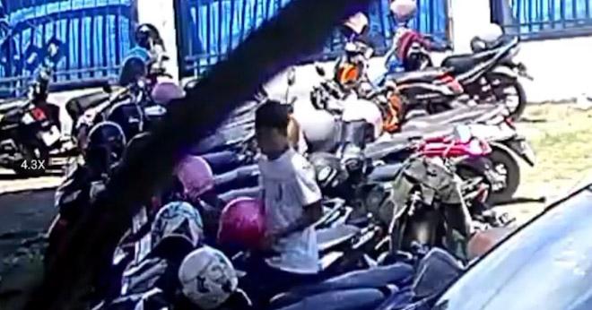 Dalam rekaman berdurasi 48 detik yang diterima Indosultra.com, pelaku yang mengenakan kaus putih terlihat memantau situasi sambil duduk di atas sepeda motor. Sesekali ia pura-pura menelpon untuk mengelabui orang sekitar.