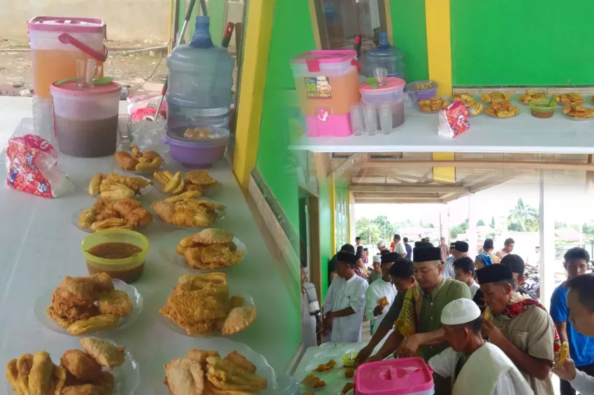 Di Mesjid Al-Muhajirin Kelurahan Wanggudu, Kecamatan Asera, Kabupaten Konawe Utara, para pengurus rumah ibadah ditempat itu menyajikan menu makanan/Snack di tiap hari Jum’at untuk para jamaah.