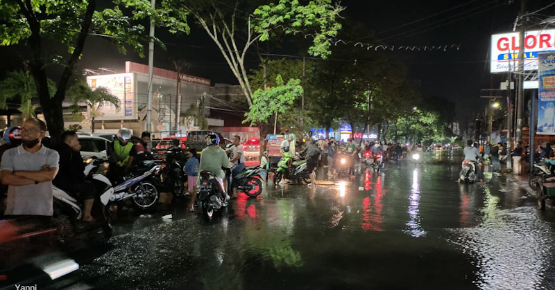 Dikatakan Agus Blues Asianto awalnya berniat menerobos genangan air di Jalan Gatot Subroto, namun lama kelamaan, air sudah setinggi kenalpot motor trail Kawasaki yang ditungganginya, dan membuat mesin motor mati di tengah genangan.