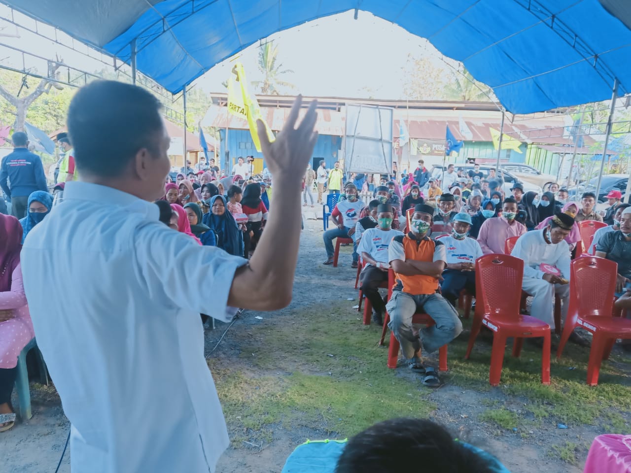 Wabup Konut, Abu Haera saat menyampaikan orasi politiknya dalam kampanye terbatas di Kelurahan Bende dan Desa Sambasule.