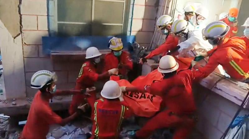 Indosultra.com, Sultra – Tim Indonesia Search and Rescue (INASAR) yang berkolaborasi dengan Tim SAR setempat dan Fire Brigades Myanmar berhasil menemukan tiga jasad korban gempa di reruntuhan gedung perumahan pegawai negeri sipil di Thukha Theiddhi Ward, Rabu (2/4/2025).