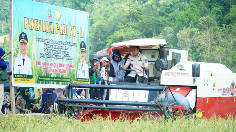 Sementara itu, Bupati Konut, H. Ikbar, S.H.,M.H didampingi Wakilnya H. Abuhaera, S.Sos.,M.Si turun langsung ke lapangan memimpin panen raya padi sawah musim tanam II di Desa Matanggonawe, Kecamatan Sawa, dengan total lahan panen mencapai 135 hektar.