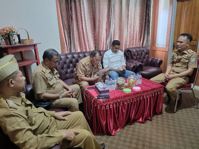 Ketgam: Sekda Konut, Kasim Pagala didampingi Asisten ll, Muhardi Mustafa, Asisten lll, La Ondjo saat melakukan koordinasi di Kantor Inspektorat terkait penertiban aset daerah.