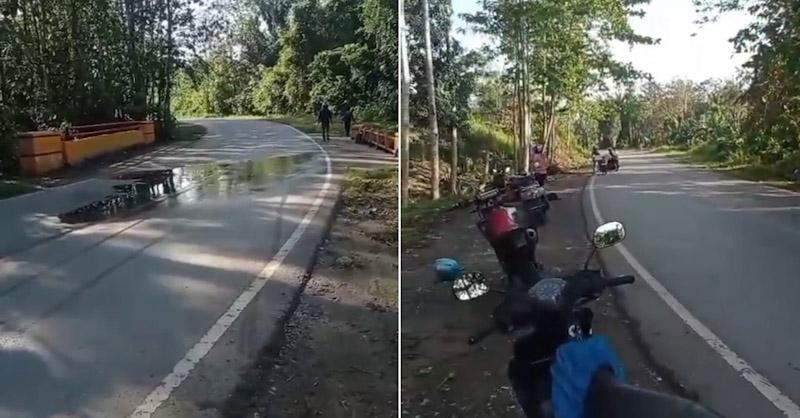 Pria itu juga menyebut sudah ada sejumlah pengendara motor yang terjatuh akibat kondisi jalan tersebut.