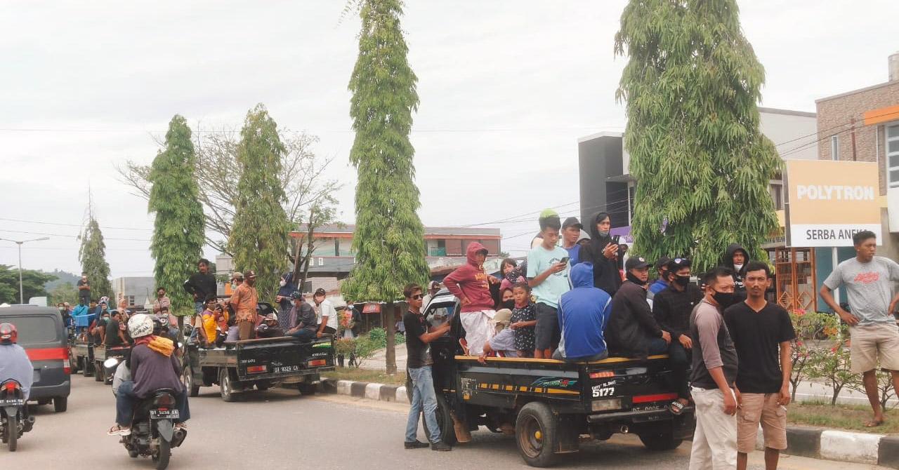 Indosultra.com, Unaaha – Ratusan warga Desa Dawi-dawi, Kecamatan Wonggeduku, Kabupaten Konawe, menggelar aksi damai di simpang 4 Tugu Adipura kemudian bergerak di pelataran kantor Bupati Konawe, dan mako Polres Konawe, Senin (17/01/2021).