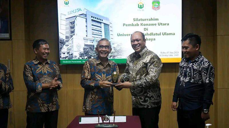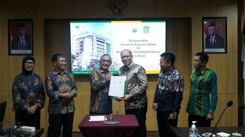 Bupati Konut, Ruksamin didampingi beberapa pejabat daerah Konut mengunjungi 2 universitas yaitu, Universitas Nahdlatul Ulama Surabaya (Unusa) dan Universitas Negeri Surabaya (UNESA).