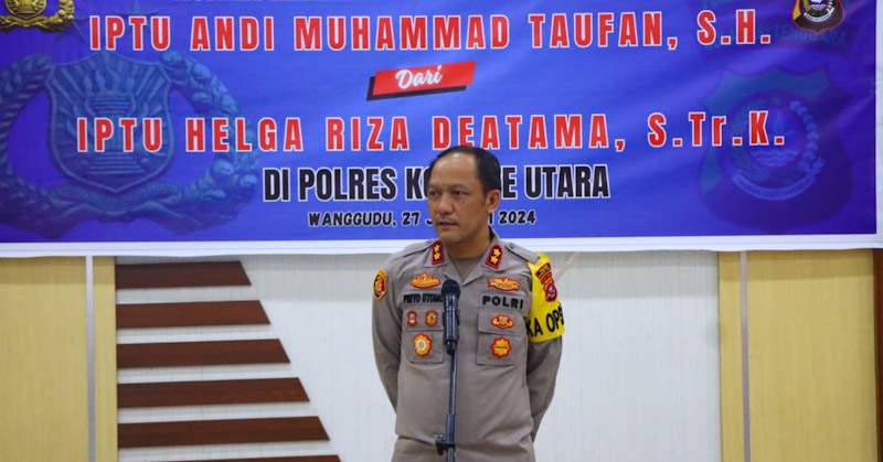 Indosultra.Com, Konawe Utara – Kepala Kepolisian Resor Konawe Utara AKBP Priyo Utomo, S.H., S.I.K memimpin kegiatan Kenal dan Pamit Kapolsek Lasolo bertempat di Aula Sanika Satyawada Polres Konawe Utara, 27/1/24) pukul 11.00 wita