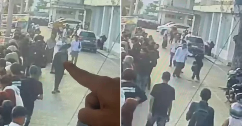 Namun situasi berubah tegang ketika ia tiba di kerumunan mahasiswa lain, lalu tiba-tiba membanting salah satu mahasiswa ke tanah dan menarik kerah bajunya.