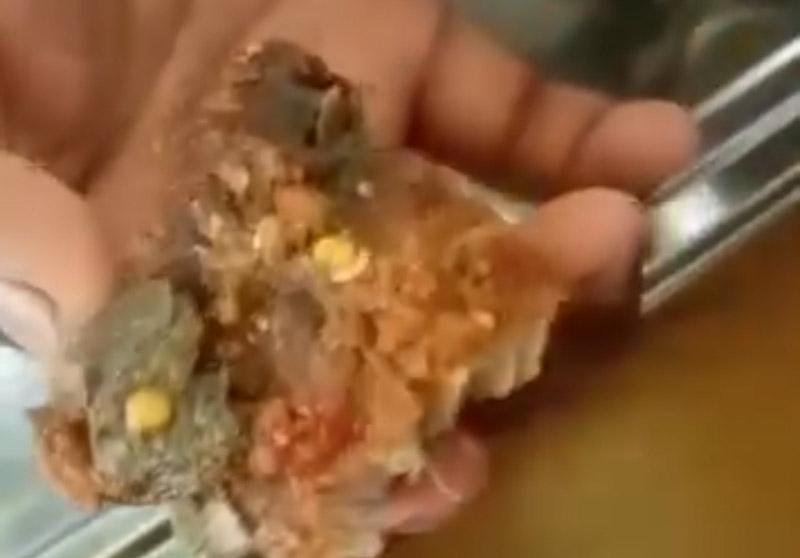 ‎Dalam video berdurasi sekitar 20 detik yang beredar, tampak sepotong ikan goreng berisi seekor ulat berwarna putih yang masih hidup dan menggeliat di sela daging ikan.