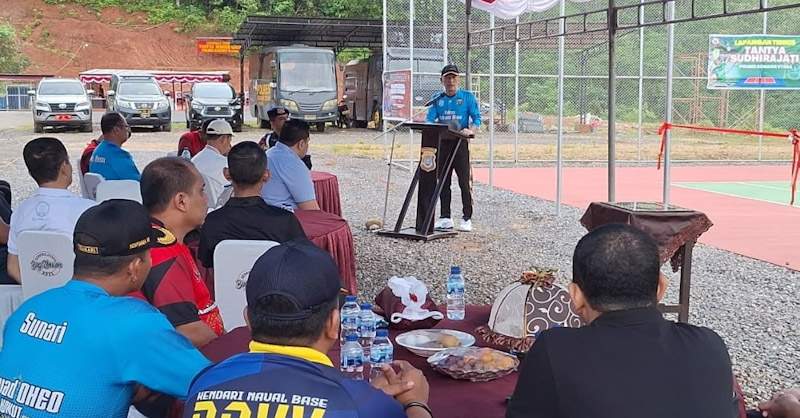 “Rangkaian peresmian lapangan tenis ini akan kita lanjutkan dengan menggelar Turnamen Antam Oheo Bhayangkara Cup 1″ucap Kapolres AKBP Priyo utomo diacara itu