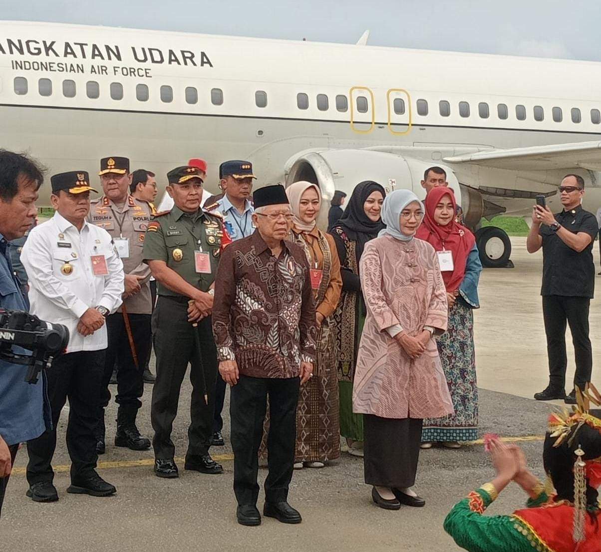 Indosultra.Com,Kendari – Wakil Presiden (Wapres) KH Ma’ruf Amin tiba di Pangkalan Udara TNI AU Haluoleo, Kabupaten Konawe Selatan (Konsel) Sulawesi Tenggara (Sultra) pada Rabu (20/3/2024) sore.