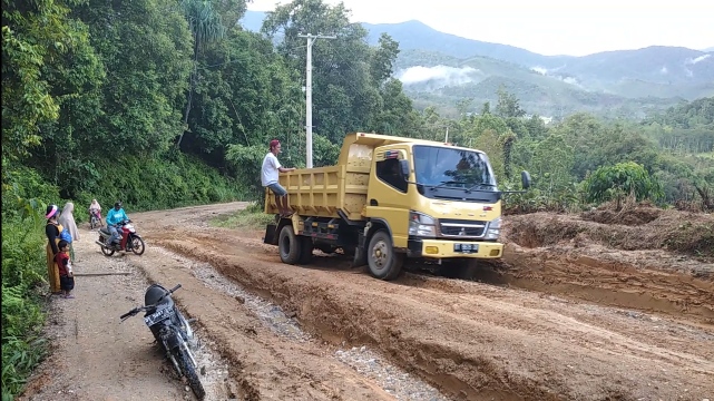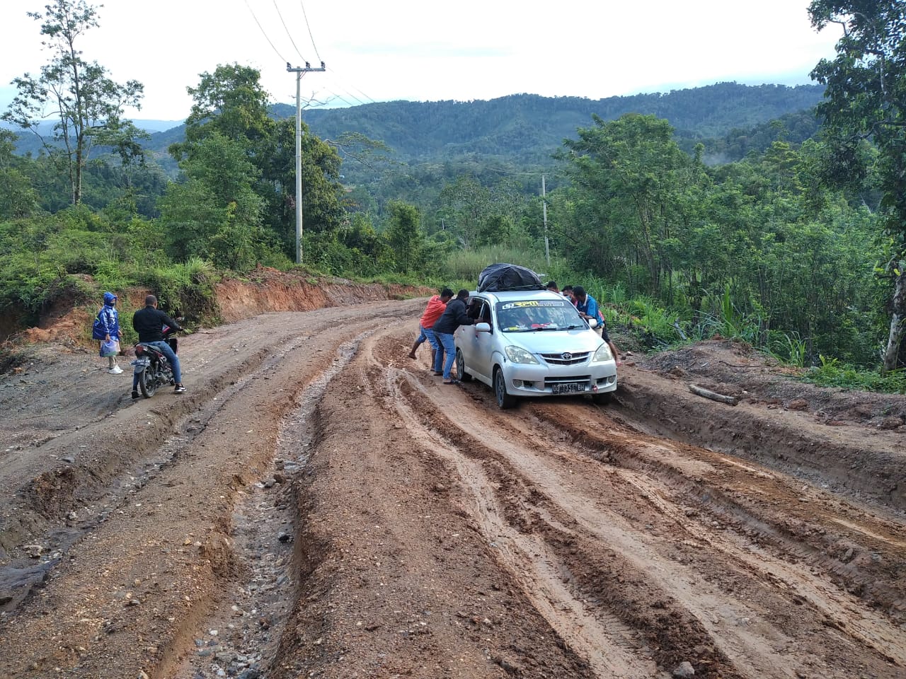 “Seandainya bagus jalanan, tidak licin tidak seperti ini. Ini kan tinggal tanah semua, begitu turun hujan jalanan menjadi licin. Susah untuk dilalui mobil. Kalau susah lewat begini kadangkala kita mencangkul tanah supaya bisa lewat ban mobil. Atau tidak terkadang kita menunggu sampai kering tanah. Saya bilang, bagaimana mi ini. Kapan bagus ini jalanan,” keluhnya.
